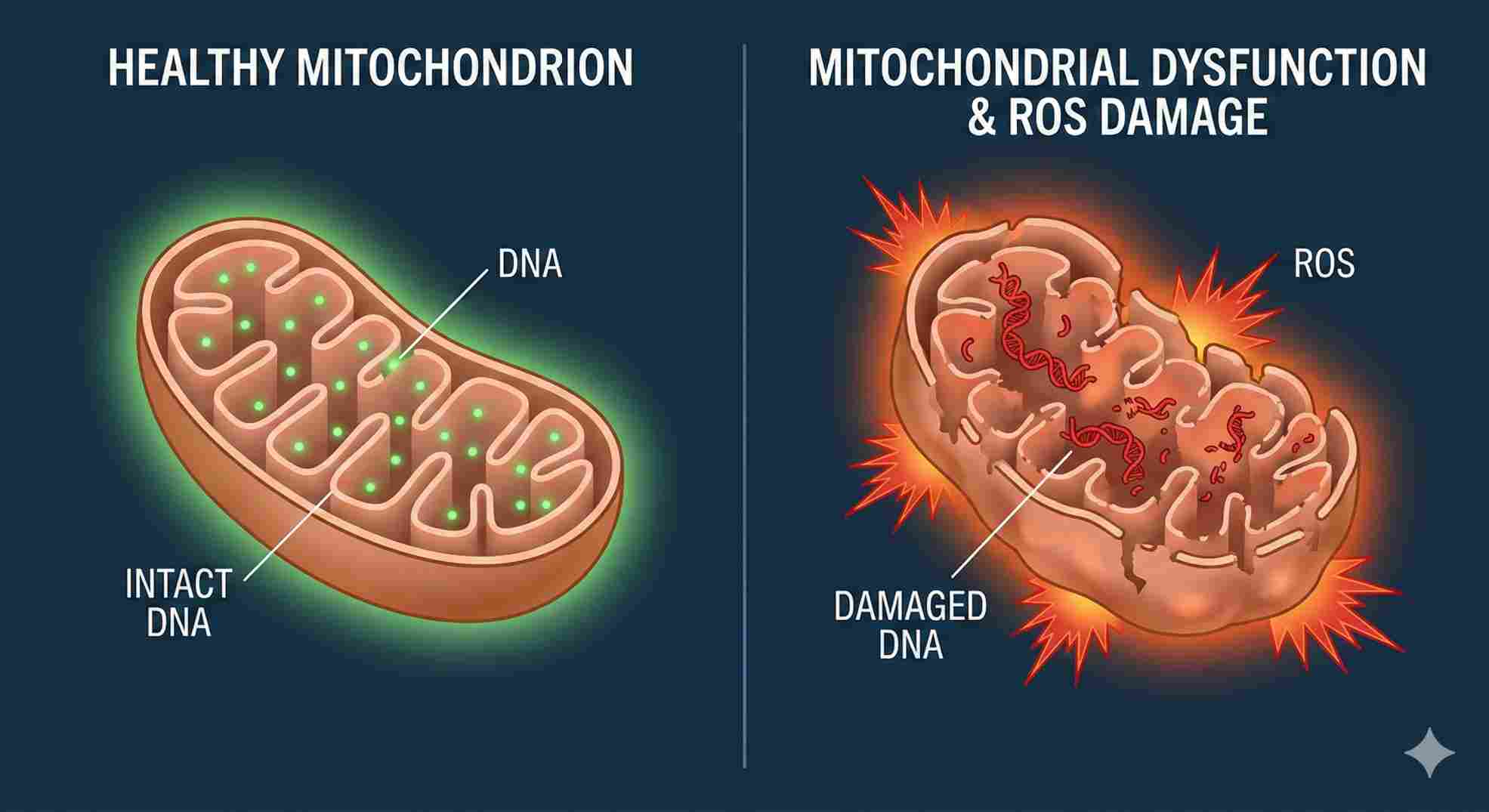 This stress can damage your mitochondrial DNA (mtDNA). Unlike the DNA in your cell’s nucleus, mtDNA is very fragile. It doesn’t have the same heavy-duty repair mechanisms. Over time, this damage leads to mitochondrial dysfunction. This is the root cause of many age-related issues, including heart disease and memory loss. When your mitochondrial metabolism is broken, you age faster on the inside, and your cells lose their ability to repair themselves.