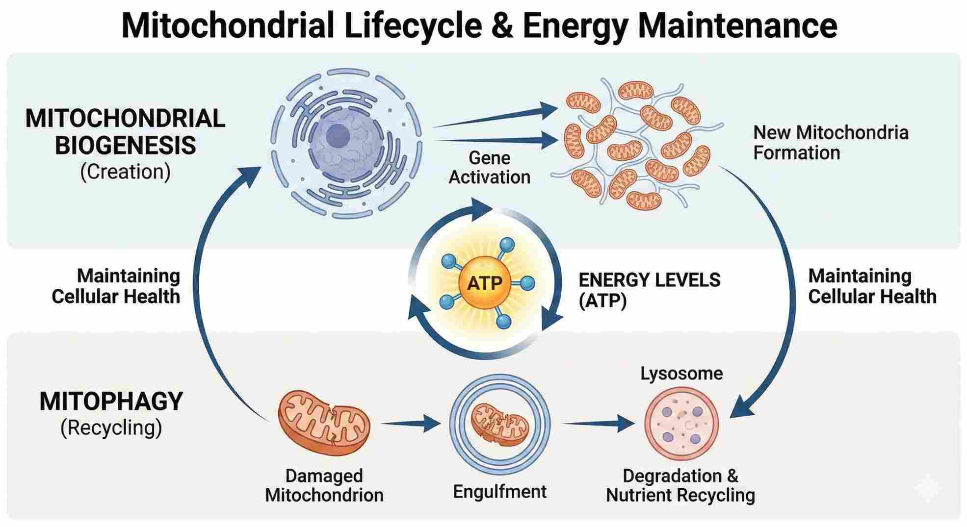 On the flip side, we have mitochondrial biogenesis. This is the creation of brand-new mitochondria. When you challenge your body—through exercise or cold exposure—you signal your cells to build more engines. More engines mean more cellular energy and better energy homeostasis. By constantly clearing out the old and building the new, you keep your mitochondrial metabolism at peak performance. Current research on mitophagy and biogenesis highlights these as critical pathways for preventing chronic disease.